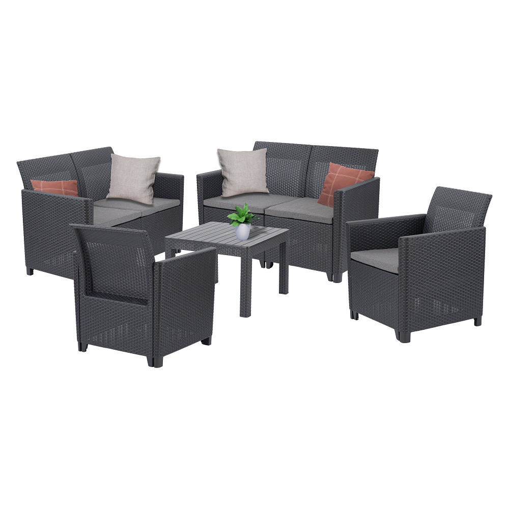 A bútorok modern, sötétszürke színvilága és szögletes formatervezése jól illeszkedik bármilyen kültéri környezethez, legyen szó modern, mediterrán vagy klasszikus stílusról.