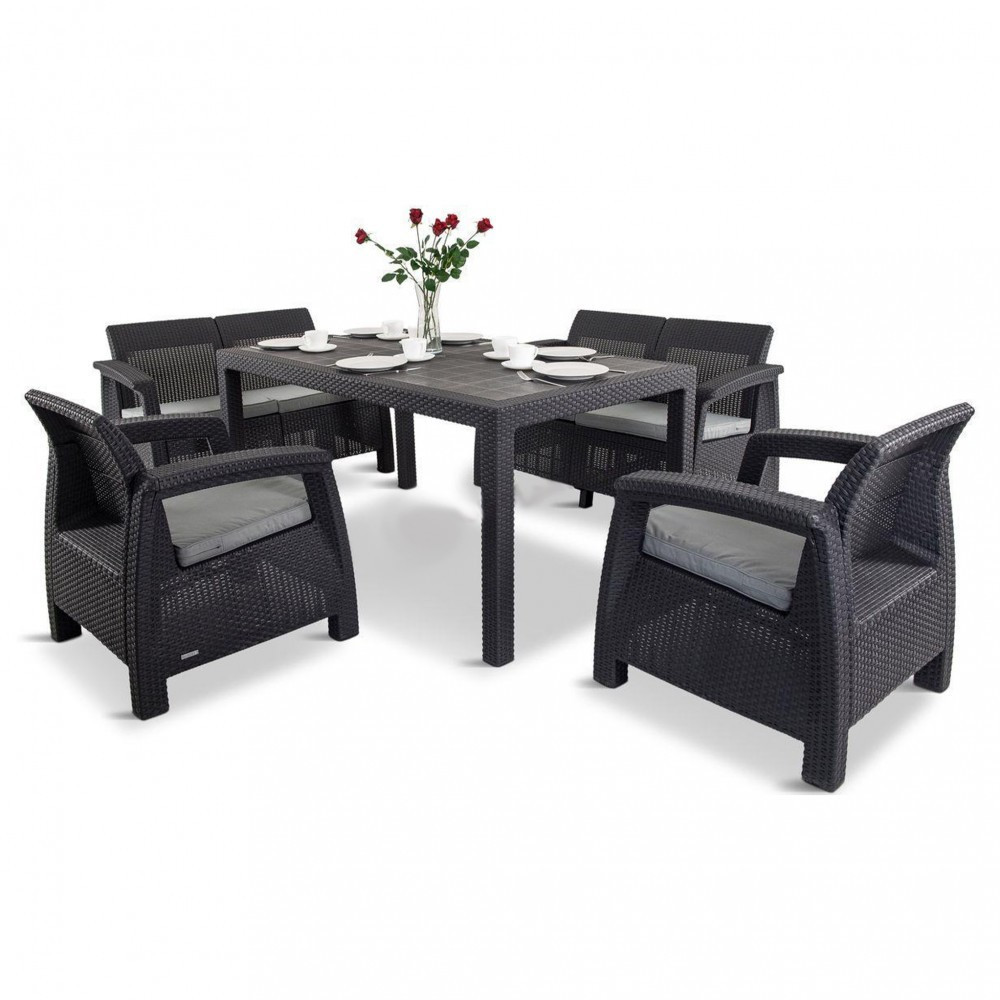 Corfu fiesta set kerti bútor garnitúra, grafit színben, világos szürke párnával
