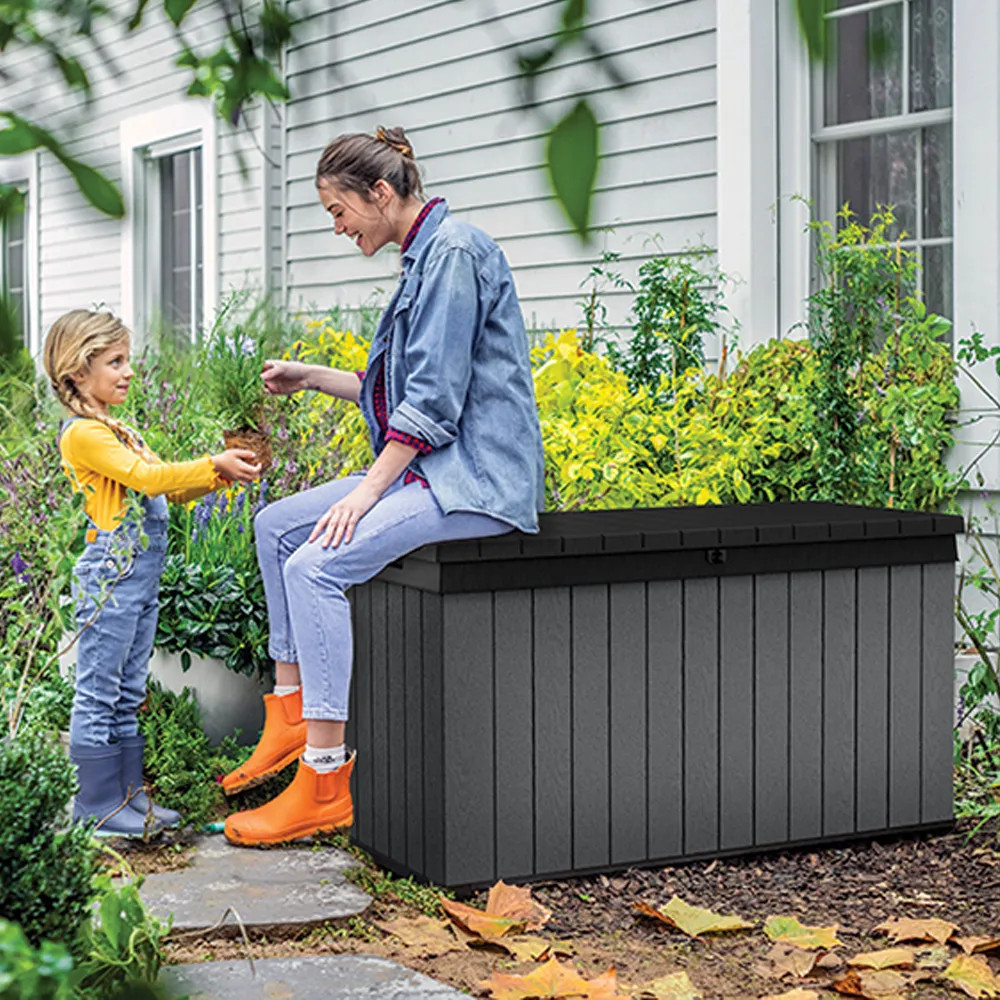 A funkcionális és tágas , 570 liter űrtartalmú kerti tárolót a neves Keter cég gyártotta, amelynek nagy tapasztalata van a műanyagból készült kerti felszerelések létrehozásában. A kerti tároló tökéletes hely a kerti székek, játékok vagy egyéb kerti felszerelések párnáinak tárolására. Noha fa kerti doboznak tűnik , ez csak egy stilisztikai eljárás, amelyet a gyártási folyamat során hajtanak végre. A Keter Darwin kerti tároló teljes egészében erős és tartós műanyagból készül. Ennek köszönhetően vízálló, ellenáll az UV sugárzásnak és környezetbarát is. A Keter termékek előállításához szükséges anyagok nagy részét újrahasznosításból nyerik.