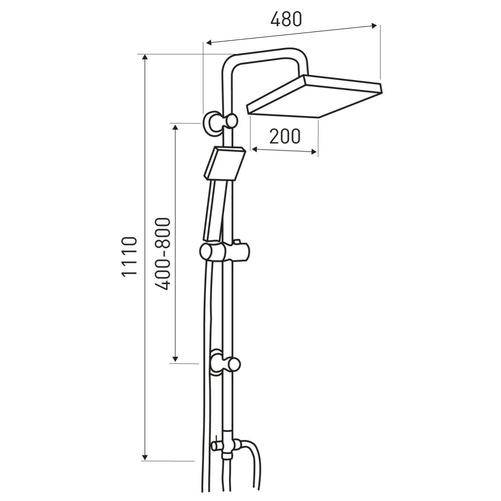 Az aranyszínű kiegészítőkkel ellátott fekete zuhanykészlet mérete 110 x 20,5 x 48 cm. A zuhanyon beállíthatja a rögzítőkonzolok távolságát 30 és 80 cm között. A Denis 63 zuhanykészlet tartós és sérülésálló 150 cm hosszú tömlővel és fogantyúval van felszerelve, amely lehetővé teszi a kézibeszélő kényelmes felakasztását. A készletben található zuhanyfej és esőzuhany egy típusú fúvókával rendelkezik. A Denis 63 zuhanykészlet elegáns, négyzet alakú esőzuhanyfejjel rendelkezik, arany színben. Méretei 20x20 cm.