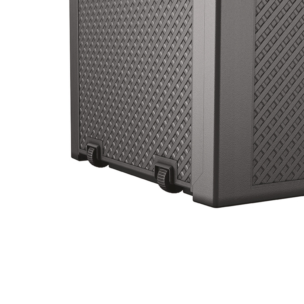 A forma egyszerűsége, valamint a könnyű és gyors összeszerelés az univerzális Emily 270L doboz fő előnyei. A kerti tároló különféle kerti szerszámok és kiegészítők, párnák és gyerekjátékok tárolására szolgál. A modern dizájn és a klasszikus színek lehetővé teszik, hogy a dobozt bármilyen kerti dekorációhoz illessze.