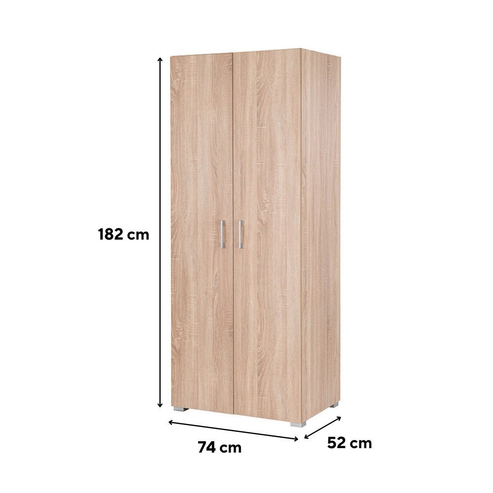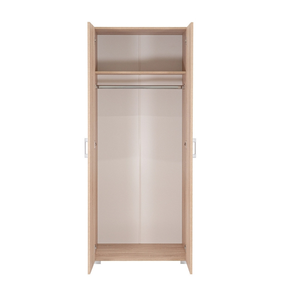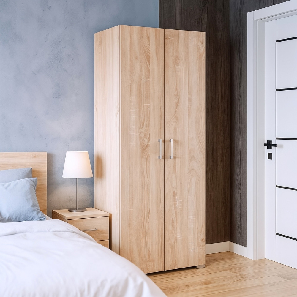A Family ruhásszekrény ideális választás mindazok számára, akik kis helyen is hatékony tárolási megoldást keresnek. A 74 cm széles és 182 cm magas szekrény kompakt kialakításával és natúr sonoma tölgy színével harmonikusan illeszkedik bármely hálószobába, vendégszobába vagy előszobába. A kétajtós kivitel mögött egy praktikus akasztórúd és egy felső polc segíti a rendszerezett tárolást – legyen szó ruhákról, kabátokról, dobozokról vagy egyéb kiegészítőkről.