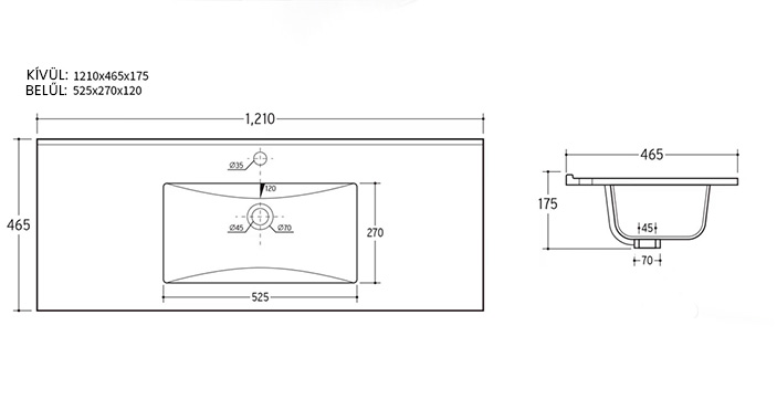 V955 - Flat Design 1 medencés mosdó 18x120x46 cm