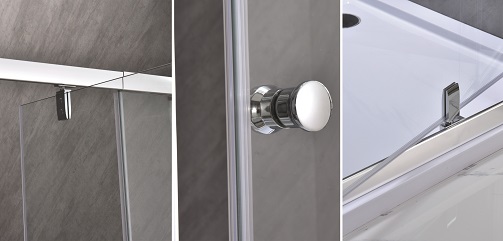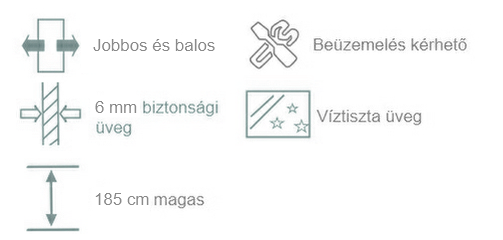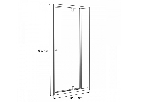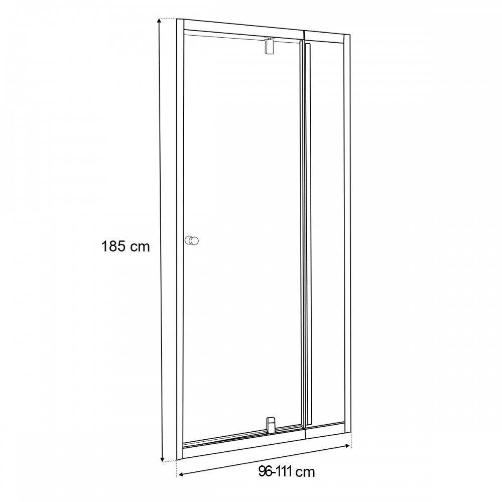 Önmagában is beépíthető zuhanyajtó, 96-111 cm között állítható a szélessége, 6mm-es biztonsági víztiszta üveggel, krómozott alumínium profilokkal és ajtófogantyúval rendelkezik.