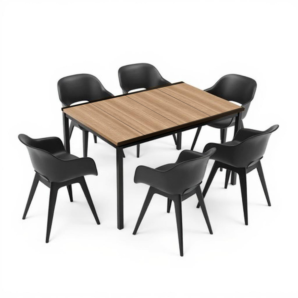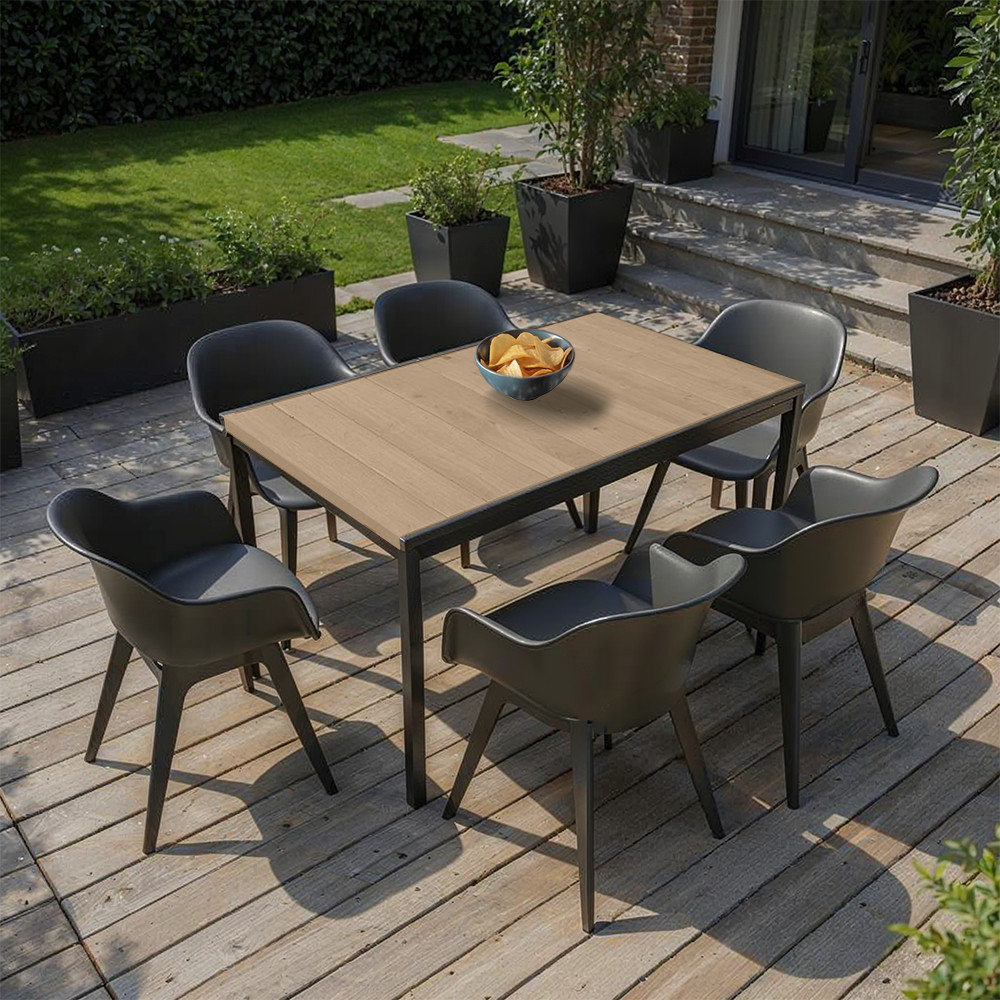 - Szett tartalma: 1 db Porto 160 műanyag kerti asztal (kőris színben) + 6 db Akola Duo kerti szék (grafit színben)