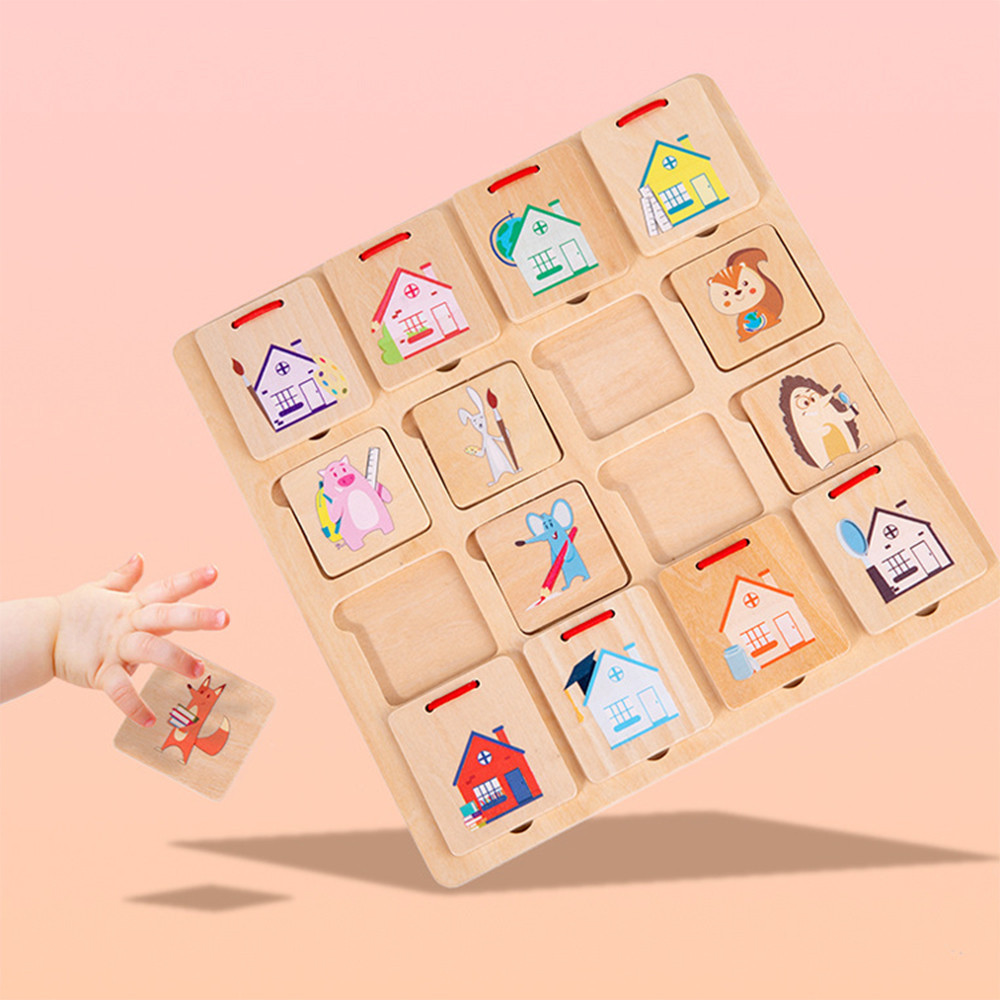 A játék második részében a gyerekeknek meg kell próbálniuk visszatenni az állatkákat az eredeti helyükre, de ezúttal a rájuk jellemző tárgyak segítségével. Ez fejleszti a gyerekek figyelmét, memóriáját és képességüket a párosításra.