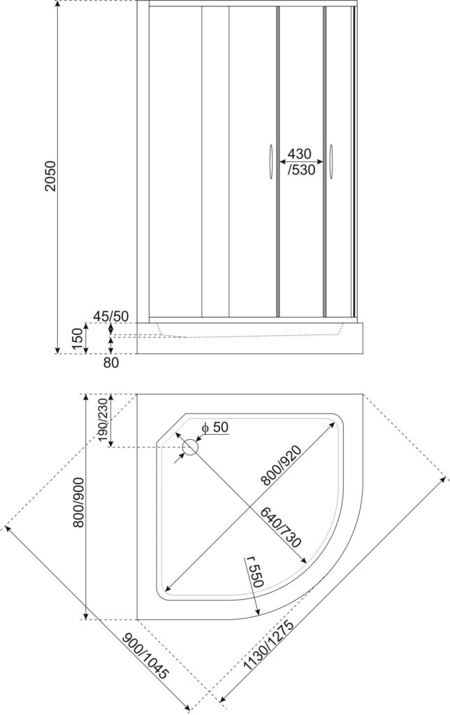- Magasság a padlótól a zuhany lefolyójáig – 8 cm