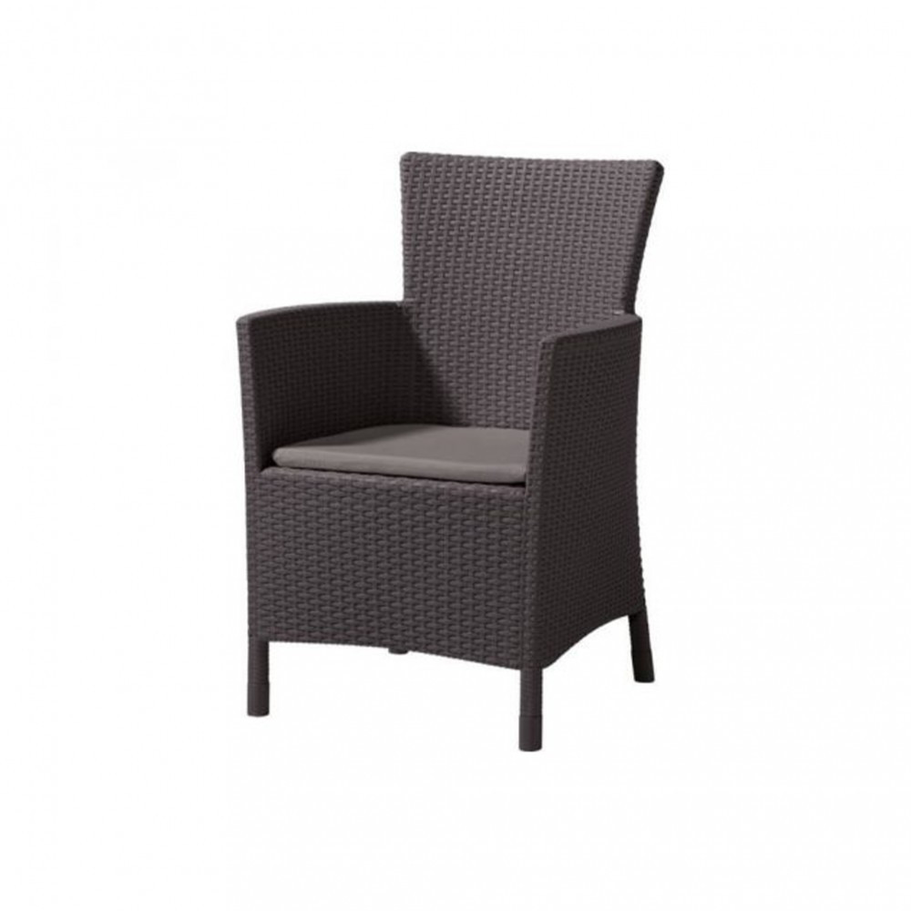 Az elegáns Rattan Style Iowa DC kerti fotel elegáns és sokoldalú kiegészítő, otthonához, kertjéhez vagy teraszához. A fotel nagyon tartós és megfelel a legigényesebb emberek szabványainak is. A bútorokat az Allibert gyártotta, amely egy csoportban működik olyan vállalatokkal, mint például a Keter vagy a Curver, akik magas szintű műanyag berendezéseket kínálnak