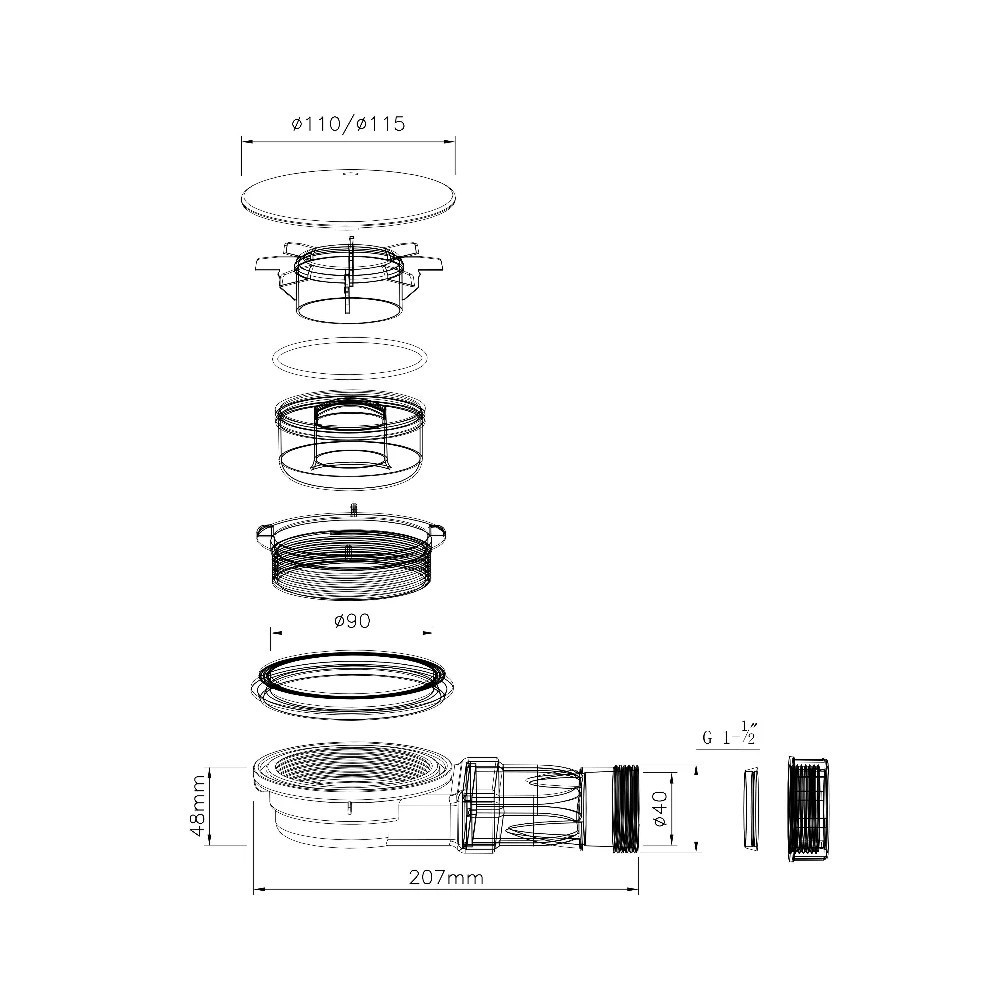 Főként 90 mm-es lefolyóval rendelkező zuhanytálcákhoz ajánljuk, leginkább a Leziter Modena Slim zuhanytálcákhoz.