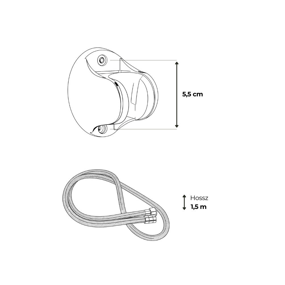 A 1,5 méter hosszú, rozsdamentes acél zuhanytömlő megfelelő mozgásteret biztosít a kényelmes használathoz. A sárgaréz csatlakozó stabil, szivárgásmentes illeszkedést nyújt, amely elősegíti a problémamentes, hosszú távú használatot.