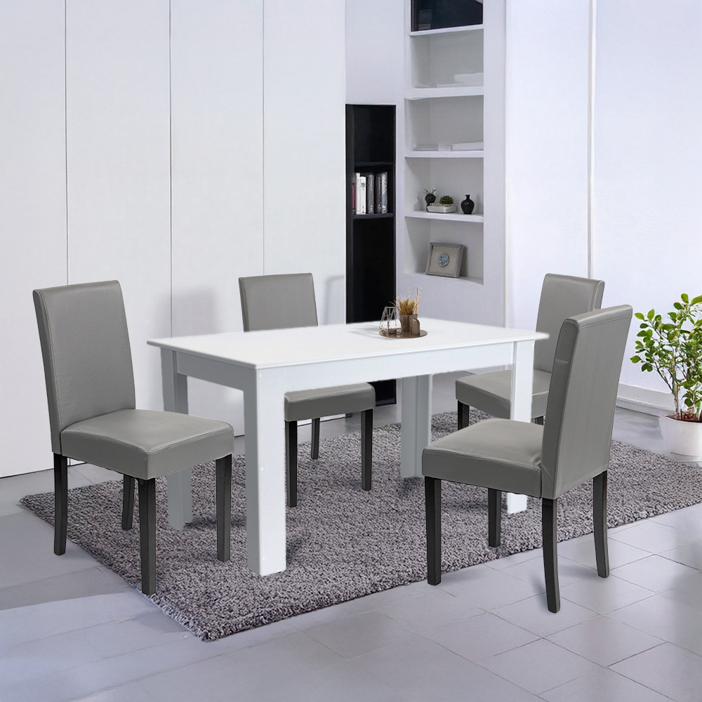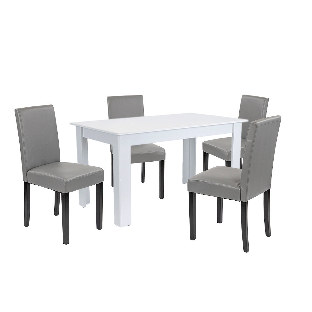 Te is unod már a billegő asztalokat és a kényelmetlen, nyikorgó székeket, amik elrontják a közös étkezések hangulatát? A mindennapi vacsorák, családi ünnepek vagy baráti összejövetelek során mindenki kényelmet és kellemes légkört keres — de egy instabil asztal vagy nehezen tisztítható felületek csak bosszúságot okoznak. Főleg, ha kisgyermekekkel vagy gyakori vendégekkel élsz együtt, ez folyamatos stressz forrása lehet. A Leziter Leon 4+1 étkezőgarnitúra fehér-szürke színben ezt a problémát végleg megoldja: kompakt, mégis elegáns szett, amely négy kényelmes széket és egy stabil, praktikus étkezőasztalt kínál — tökéletes választás otthonra, irodába vagy vendéglátóhelyekre egyaránt.