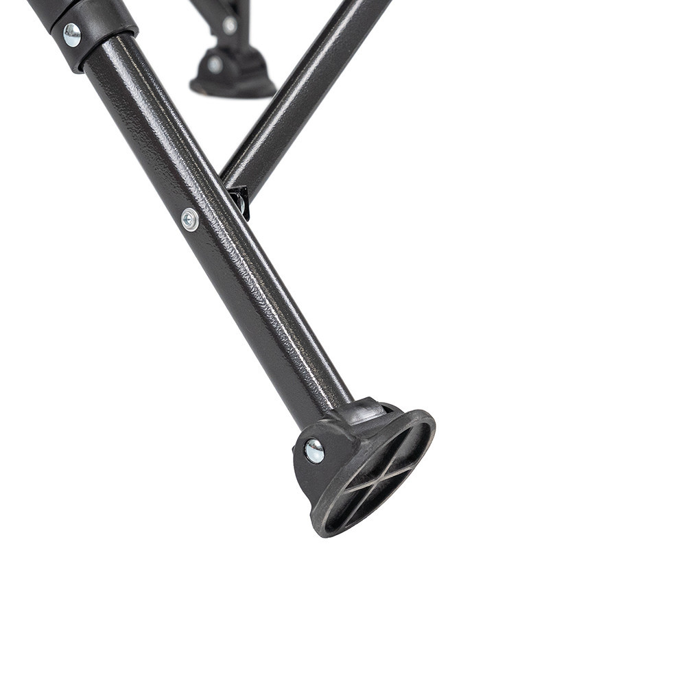 A szék acélcső váza stabil szerkezetet biztosít. A széles lábtappancsok a puhább talajon is hozzájárulnak az egyensúly megőrzéséhez, ezáltal változatos kültéri környezetben is jól használható.