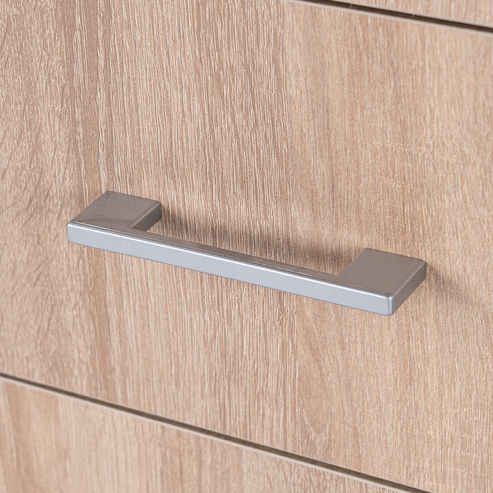 A Miami komód sonoma tölgy fronttal és a fehér korpusszal tisztaságot és eleganciát kölcsönöz a térnek, miközben a minőségi bútorlap anyaga garantálja a tartósságot és az ellenálló képességet. Méretei - 40 cm mélység, 80 cm szélesség, 92 cm magasság - ideálisak bármely helyiségbe. A komód 4 görgős fiókkal lett kialakítva, amelyek tökéletesen alkalmasak ruhák, könyvek vagy akár irodai felszerelések tárolására. A modern dizájnt matt króm hatású műanyag fogantyúk egészítik ki, amelyek még letisztultabbá teszik a megjelenést.