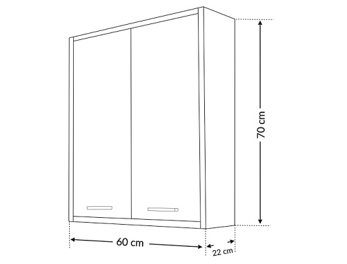 A fürdőszoba szekrény kevés helyet foglal viszont rendelkezik egy két ajtós szekrénnyel ahol két polc található így kényelmesen elférnek a fürdőszobai pipere eszközök. Kevés helyigénye miatt kisebb fürdőszobák berendezésére is alkalmas, például panel lakásokban. A termék magas minőségű bútorlapból készül és színben passzoló élzárókkal van ellátva. A fürdőszoba bútor felfüggesztett kivitelben kapható.