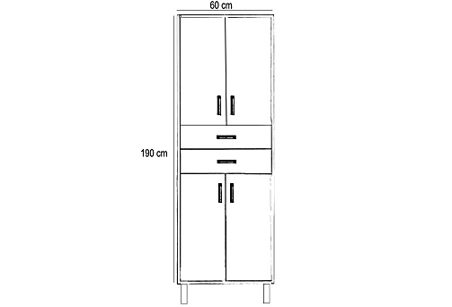 A fürdőszoba bútor kevés helyet foglal viszont rendelkezik két darab két ajtós szekrénnyel és két tágas fiókkal ahol kényelmesen elférnek a fürdőszobai pipere eszközök. Kevés helyigénye miatt kisebb fürdőszobák berendezésére is alkalmas, például panel lakásokban. A termék magas minőségű bútorlapból készül és színben passzoló élzárókkal van ellátva. A fürdőszoba bútor álló kivitelben kapható.