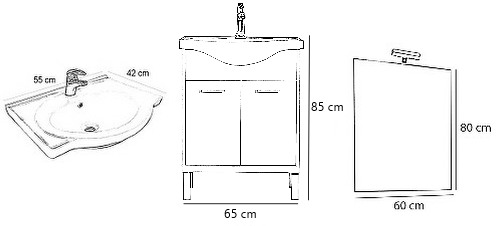 - Alsó rész mosdó nélkül : 80x65x33 cm (mosdóval : 82x65x48 cm )