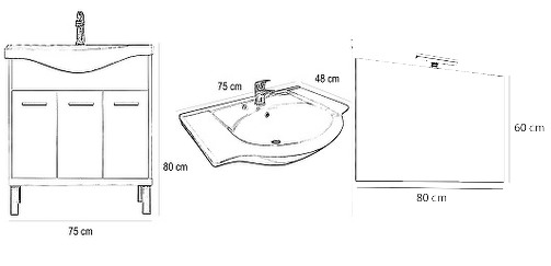 - Alsó rész mosdó nélkül : 80x75x33 cm (mosdóval : 82x75x48 cm )