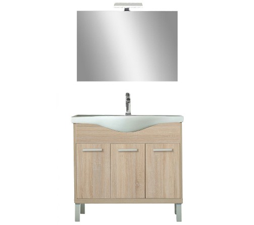 A fürdőszobabútor kevés helyet foglal viszont tágas alsó és felső szekrénnyel rendelkezik ahol kényelmesen elférnek a fürdőszobai pipere eszközök. Kevés helyigénye miatt kisebb fürdőszobák berendezésére is alkalmas, például panel lakásokban. A termék magas minőségű bútorlapból készül és színben passzoló élzárókkal van ellátva. A fürdőszoba bútor mosdóval együtt kapható.