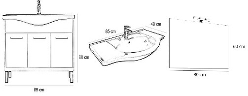 - Alsó rész mosdó nélkül : 80x85x33 cm (mosdóval : 82x85x48 cm )