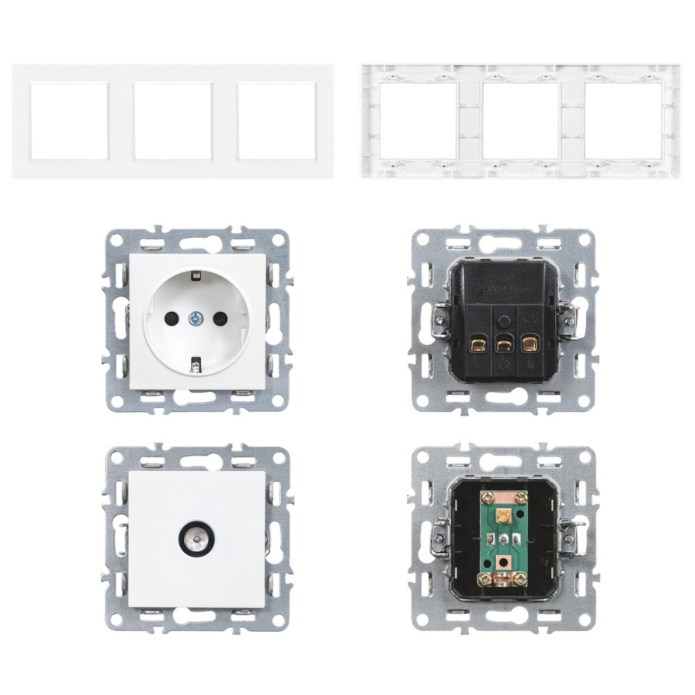 Rendeld meg most a Nova III kettő földelt csatlakozóaljzatot TV csatlakozóval, és egészítsd ki a rendszered stílusban és funkcióban is illeszkedő Nova keretekkel, USB- és UTP aljzatokkal, kapcsolókkal – minden, amire egy megbízható és letisztult beltéri szerelvényrendszerhez szükség van.