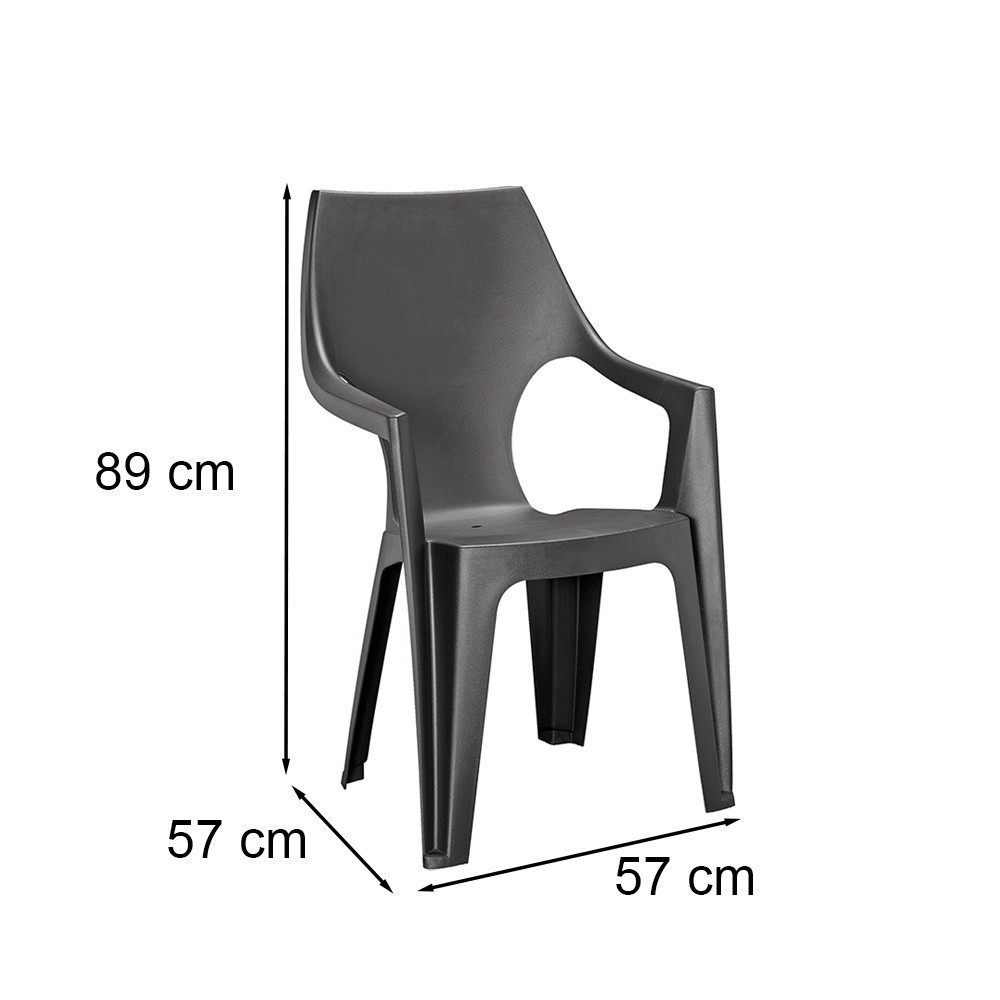 A székek tartós műanyagból készülnek, ami nemcsak a szilárdságot és stabilitást biztosítja, hanem könnyen tisztítható és ellenálló a kültéri környezet hatásainak, mint például az eső, napfény vagy a szennyeződések. A műanyag anyag UV-álló, így nem fakul, még hosszú távú használat esetén sem.