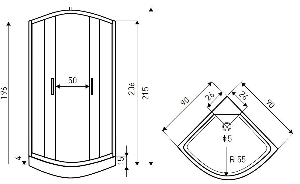 - Zuhanytálca méretei: 90 x 90 x 15 cm