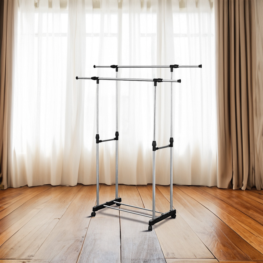 - Rugalmas használat: Az állítható magasságnak és a két szintnek köszönhetően a ruhaállvány különböző méretű ruhákhoz és kiegészítőkhöz is igazítható, legyen szó hosszú kabátokról, blúzokról vagy akár cipőkről.