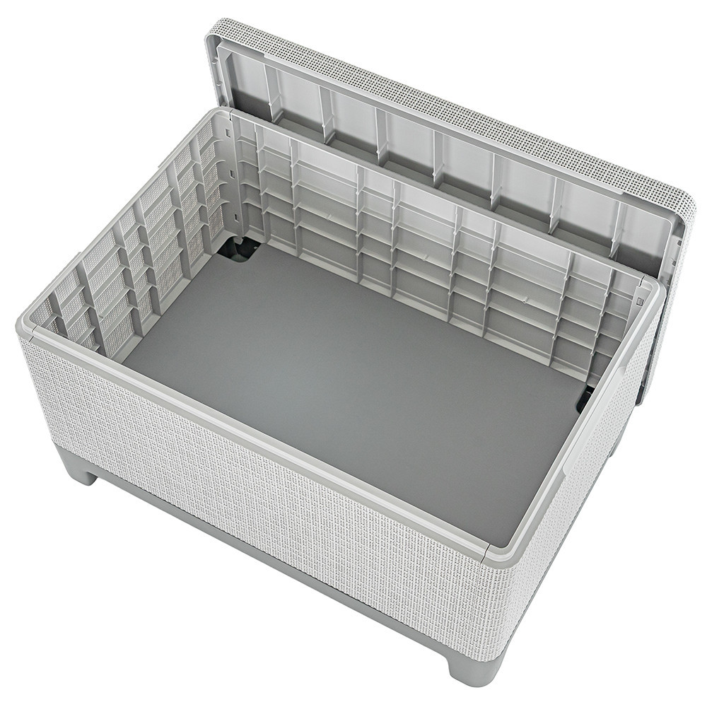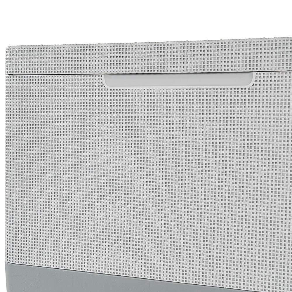 A Scandi jute tárolós asztal letisztult, modern formavilágot képvisel, amely illeszkedik a Scandi kollekció stílusához. A hamuszürke-világosszürke árnyalat visszafogott és könnyen kombinálható különböző kültéri bútorokkal és burkolatokkal. A kompakt kialakítás lehetővé teszi, hogy kisebb teraszokon, erkélyeken vagy kertben is praktikus elhelyezést kapjon, miközben önálló bútordarabként is esztétikus megjelenést biztosít.