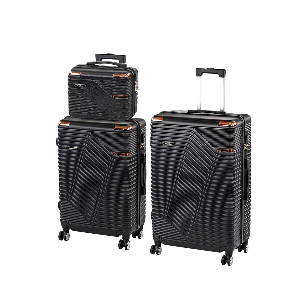 Az egész szett kiváló minőségű, karcálló ABS műanyagból készült. Az ütésálló, könnyű borításnak köszönhetően a bőröndjeid megbízhatóan védik a csomagod, akár repülőn, akár autóban vagy vonaton utazol.