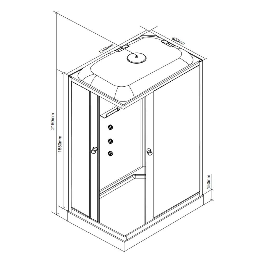 - Magasság: 185 cm (kabin), 215 cm zuhanytálcával együtt