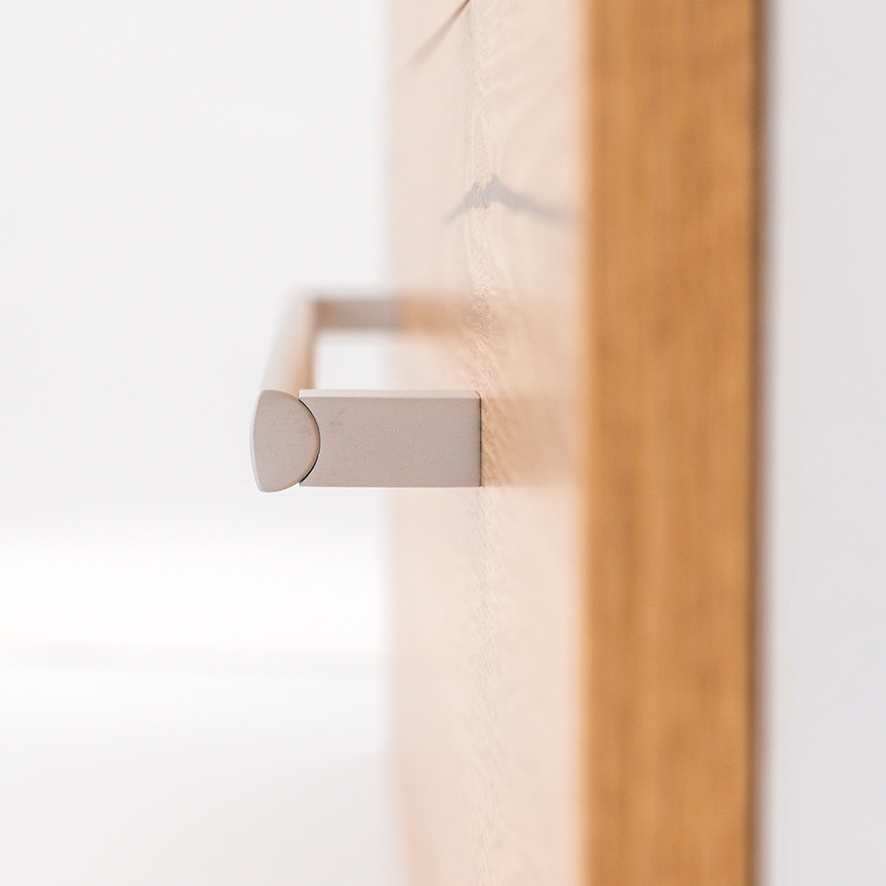 | fém fogantyú profillal a patinás hatásért | fém fogantyú profillal az időtlen megjelenésért | j-profilú kialakítás, elegáns és letisztult | 45 fokos élzáródás, modern stílus világ |