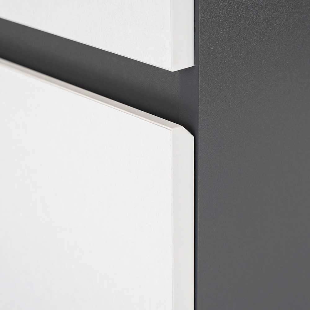 - Kifinomult színvilág: Az antracit korpusz és az fehér front kombinációja elegáns és időtálló megjelenést kölcsönöz a bútornak.