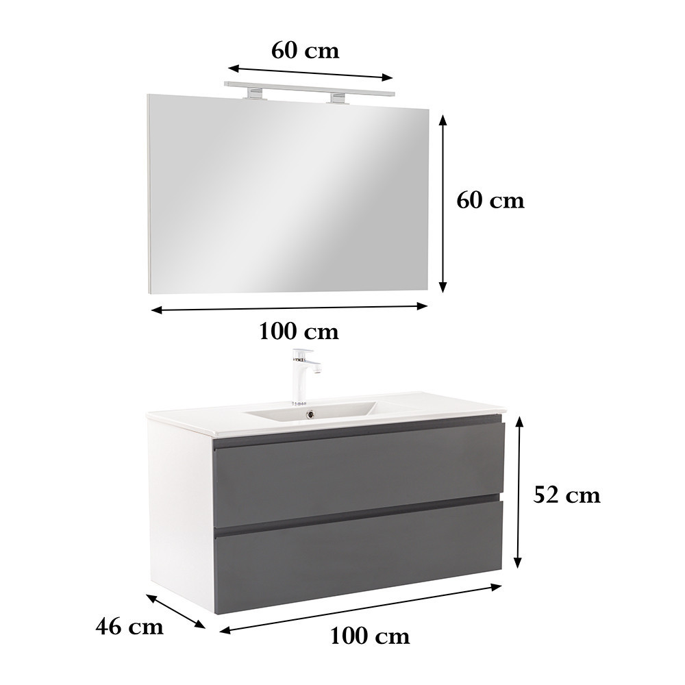 Vario Pull 100 komplett fürdőszoba bútor fehér-antracit - stílusos és modern fürdőszobabútor