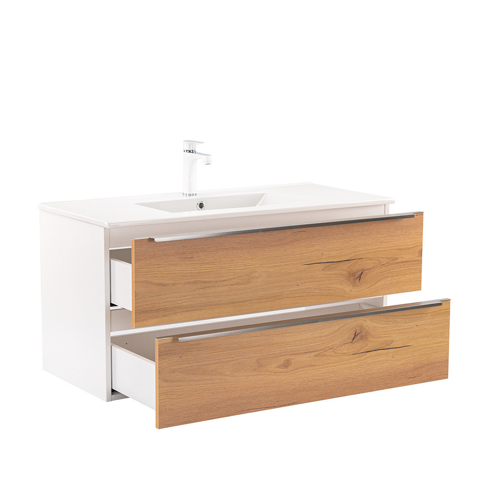 Vario Trim 100 komplett fürdőszoba bútor fehér-tölgy - stílusos és modern fürdőszobabútor