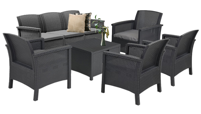 A Venus II Large 7 személyes kerti bútor szett elegendő helyet biztosít az egész család számára, hogy a szabad levegőn tudják tölteni az időt, vagy egy kellemes étkezést. Nagyszerű választás ha napközben szeretsz az udvaron pihenni és olvasgatni, mert a három személyes kanapén még el is fekhetsz. Kiválóan alkalmas családi összejövetelekhez, baráti grillpartikhoz, de még egy étterem számára is tökéletes launge hangulatot teremt ez a kültéri szett. Tényleg mindne kertet, udvart és teraszt színesebbé tesz modern és esztétikus megjelenésével.
