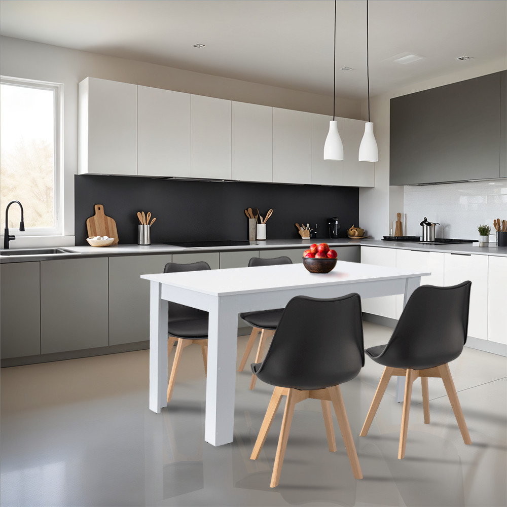 A Leziter márka Zara 4+1 étkezőgarnitúrája tökéletes választás modern lakásokba, éttermekbe és stílusos irodai konyhákba egyaránt. A garnitúra 4 db székből és 1 db asztalból, a népszerű Silla étkezőszék és a Yorki standard étkezőasztal harmonikus kombinációjából áll, egyesítve a funkcionalitást az időtlen dizájnnal. Az étkezőszett ideális 4 fő leültetésére és méretei miatt praktikusan elhelyezhető kis- és közepes helyiségekbe is.