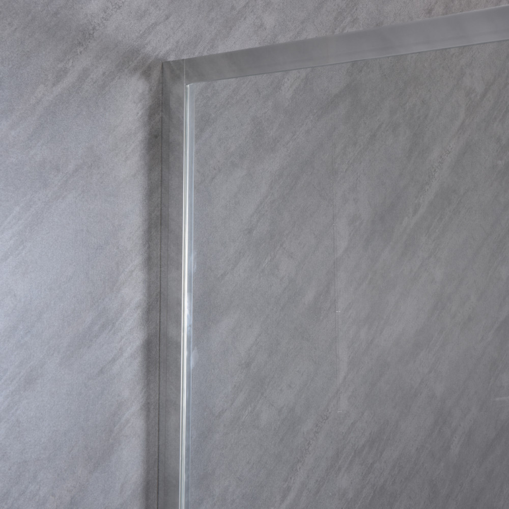 A zuhanyfal krómozott alumínium kerettel és 5mm-es víztiszta edzett biztonsági üveggel van ellátva. A modell 90cm-es szélességgel és 185cm-es magassággal rendelkezik.