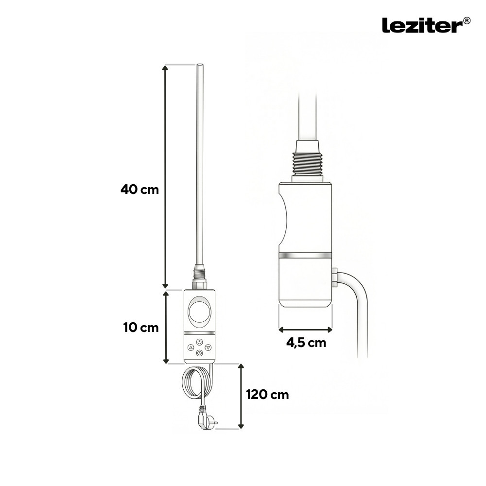 Válaszd a Leziter elektromos fűtőpatront 400W teljesítménnyel, digitális hőfokszabályozóval fekete színben – és élvezd a kényelmes, energiatakarékos és elegáns fürdőszobai fűtés minden előnyét!
