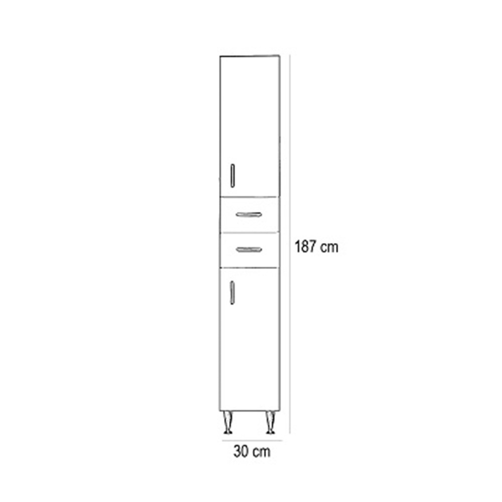 Bianca Plus 30 magas szekrény 2 ajtóval, 2 fiókkal, magasfényű fehér színben, jobbos